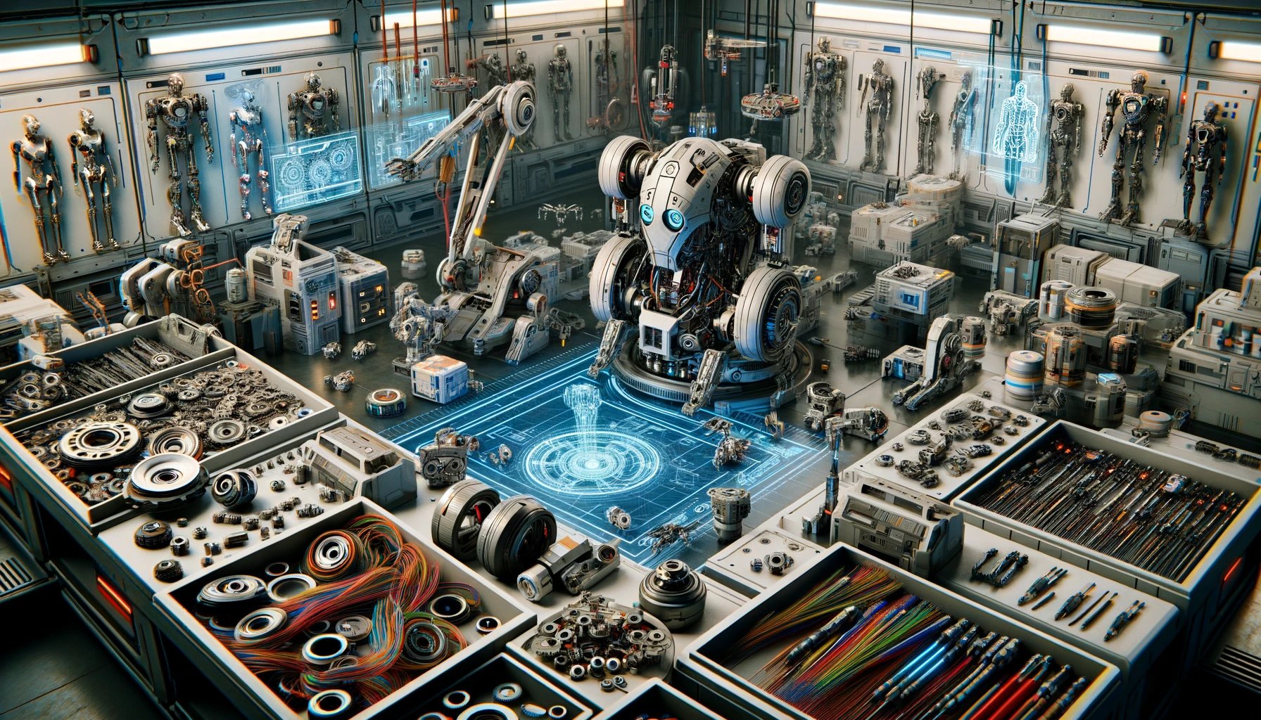Color Scheme: Its primary color is a sleek, metallic silver, accented with subtle hues of cobalt blue along the joints and eye sockets. This color scheme was chosen for its professional yet approachable appearance.